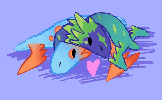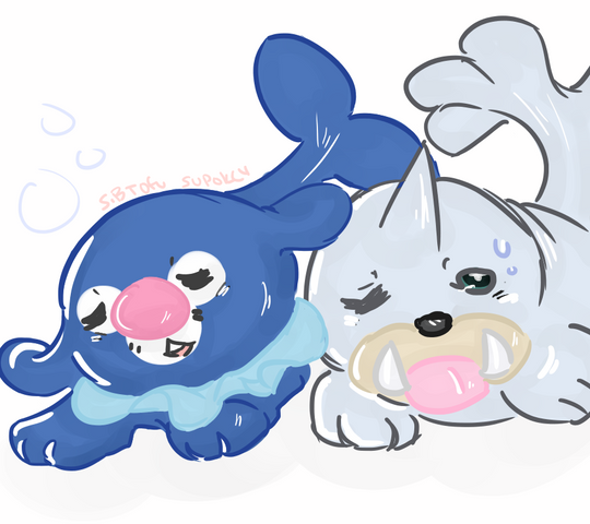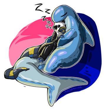 I love sharky with my blue lappi, but these two are perfect for each other!expect to see some shark n swimmer in tubes joke art to come your way soon o: