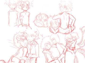So, this is just a random little comic page that I did, along with the two pervy pictures while watching Digimon. You know, I've read a couple doujin where people make Matt pretty needy and I always thought 'He's not that needy' but when I finally watched the series again I was so shocked I nearly swallowed my tongue! Matt IS really needy. Throughout almost the entire series, he's so like emo and needy that he keeps snapping at people! This hard realization of Matt's character helped inspire this random page.... plus the fact that I was fantasizing what Tai would be like if he was a manipulative, sadistic bastard. I like MSB Tai~lol Anyways.... maybe looking at this constantly will motivate me to do a fanfic. We'll just have to see.... Oh yeah, I hope everyone can read the words. And the comic goes from right to left.