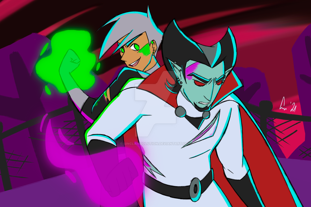 Tried out a 10 years older Danny, based on Stephen Silver's suit design. I definitely think Danny would incorporate more gadgets and weapons as time goes on--and I also think that for the tougher fights, he'd ally with Vlad (domesticated, but still a jackass) to get himself some ectoplasmic construct armor. Danny right in the forefront of the fight and Vlad in the back providing support and defense seems like the way they'd go about it, if you're asking me for my headcanons on the subject.Tried out a lot of funky brushes and effects on this one, but good lord, you sure can tell I drew this at a time when i was trying to get back into art but wasn't used to it yet haha.