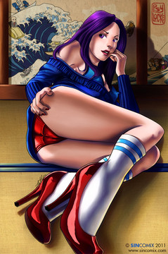 This piece was inspired by a Vintage pin-up featured in Playboy. Completed in Painter & Photoshop.