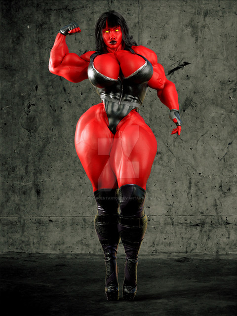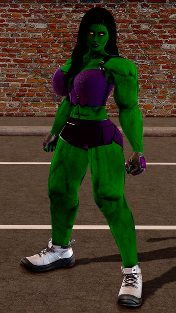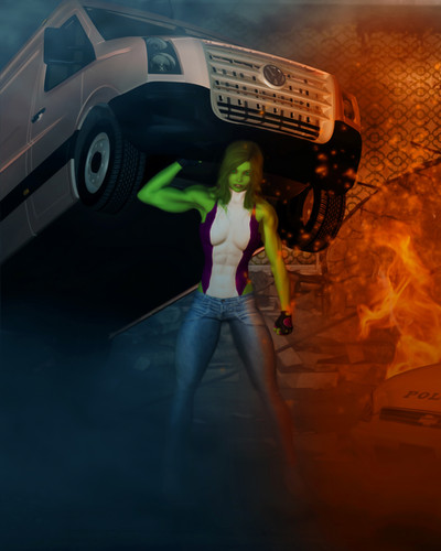 Betty Ross is the daughter of General Thaddeus "ThunderBolt" Ross and Ex~Wife of Bruce Banner. Resurrected by her own father with the aid of MODOK and the Leader as the Red She Hulk after her death by blood poisoning at the hands of the Abomination.The shy and sensitive Betty had a traumatic and devastating life before her death, after her resurrection she has returned as a withdrawn and psychotic individual though she rarely assumes her human form. Quiet and reserved Betty completely disappears when she becomes SheRulk and is replaced by a loud hard drinking brute. As SheRulk she is dangerous and unpredictable and prone to bouts of irrational hostility. She has successfully hid her bipolar tendencies from other super heroes up to this point, mostly. Here she is seen "Upholding the Law."Β