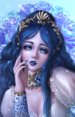 Literally everything is perfection. Her expression, the colours, and most of all how the flowers are drawn... I'm in awe.