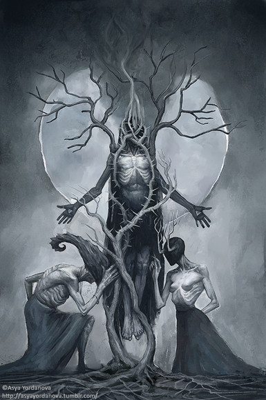 Love the composition and how the figure is pulled in and highlighted by the halo of branches/vines.