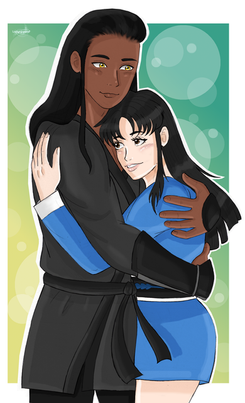 I looked up joy in the dictionary and this picture is now the official definition! Goodness, Shiori's smile is quite literally, infectious. My mood lifts ten fold every time I look at that beautiful, lovely smile! You have drawn some of my favorite Shioris and this is definitely a new favorite of mine! I adore how closely she holds Hanzo nawww ;3; And even though he's much more reserved about it, you can tell from his closed eyed, content expression that he adores Shiori just as much as she adores him! I will NEVER get over the atmosphere here, it radiants pure, passionate love.