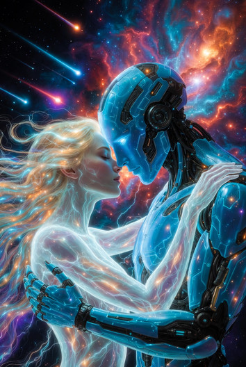 #androids #digitalart #fusion #humanoids #love #nature #sciencefiction #technology #universe #abstractillustration #aiart #artificialintelligence