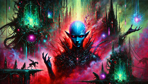 #alien #colors #concept #cyberpunk #demon #digital #drow #elf #enthrone #ethereal #fantasy #future #interstellar #neon #otherwordly #redandblue #scifi #space #spectral #aiartcommunity #dalle3_ai_art