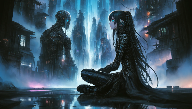 #scifi #ai #android #beauty #cityscape #darkfantasy #digital #dream #dystopian #glow #metropolis #neon #solitude #soul #surreal #synthetic #aiartcommunity #artificialintelligence #cyberpunkart #dalle3_ai_art