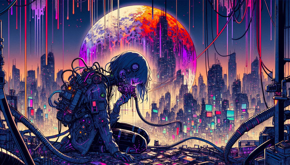 #cityscape #contemplation #cyberpunk #cyborg #dark #digital #dreams #electric #gothic #neon #silence #solitude #urban #silentcity #aiartcommunity #blackhairedgirl #lonelygirl #meditation #animemangagirl #dalle3_ai_art