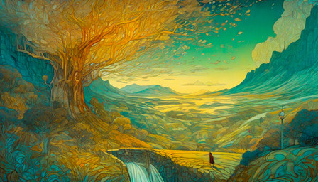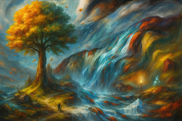 #artwork #beauty #digital #dramatic #figure #inspiration #landscape #landscapes #lone #nature #painting #scenery #scenic #serene #skies #sunset #vibrant #waterfall #art