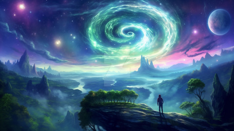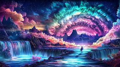 #artistic #beauty #digital #enchanting #figure #inspiration #landscape #lone #nature #night #painting #rainbow #scene #scenic #serene #sky #waterfall #art