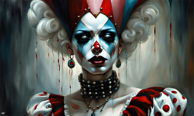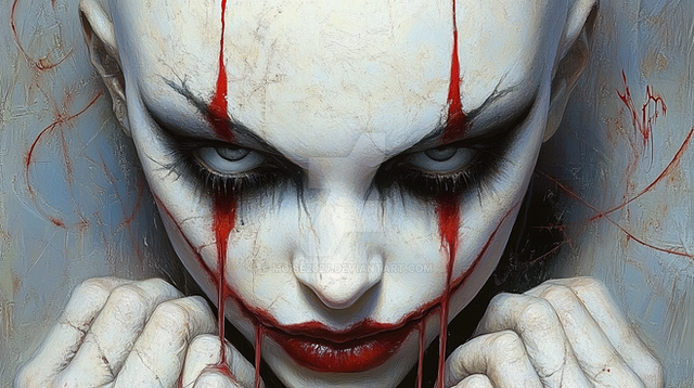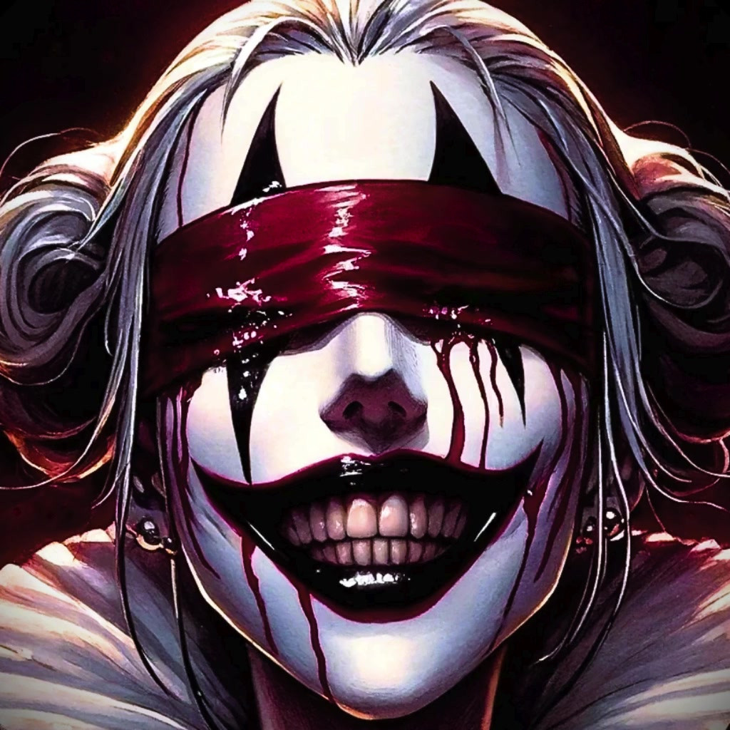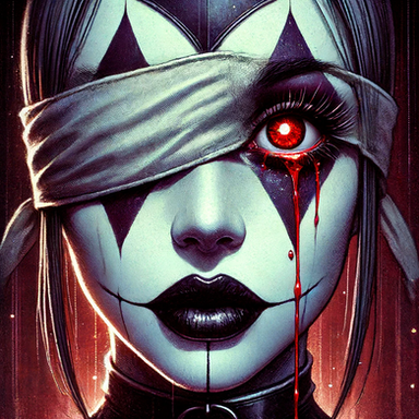 #alternativeart #artisticexpression #blindness #blood #colors #comicstyle #contrast #creepysmile #darkfantasy #emotional #gothic #harlequin #horror #intense #modern #mystery #portrait #surrealism #tears #aiartcommunity #characterconcept #digitalart #animemangagirl #dalle3_ai_art