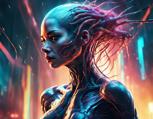 #ai #blood #concept #cyberpunk #drow #electric #elf #fantasy #female #futuristic #glitch #neon #portrait #scifi #surreal #urban #vaporwave #aiartcommunity #artificialintelligence #technoir #virtualreality #animemangagirl #dalle3_ai_art