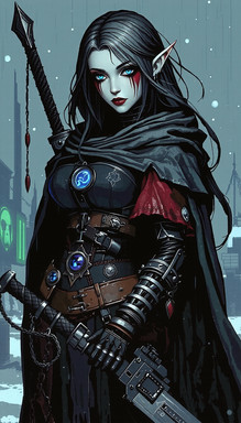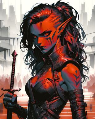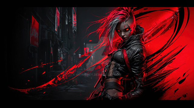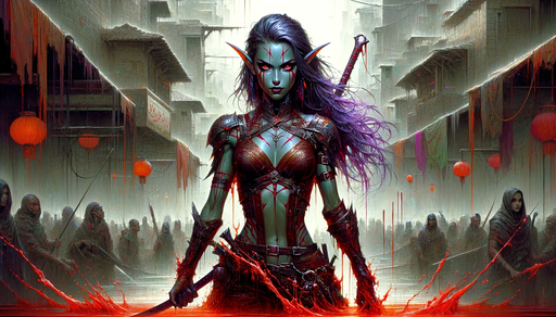 #assassin #city #crimson #cyberpunk #dark #demonic #elf #esoteric #fantasy #gothic #horror #illustration #inspired #streets #style #surreal #themes #urban #warrior #animemangagirl #art #aiartcommunity #dalle3_ai_art