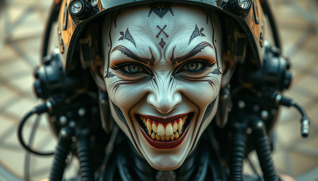 #horror #cyberpunk #ai #artificial #blood #carnival #circus #clown #corrupted #cybernetic #darkfantasy #demonic #doll #dystopian #evil #fear #futuristic #glitch #insanity #jester #laugh #masquerade #metallic #neon #nightmare #scary #sinister #twisted #wires #aihorror