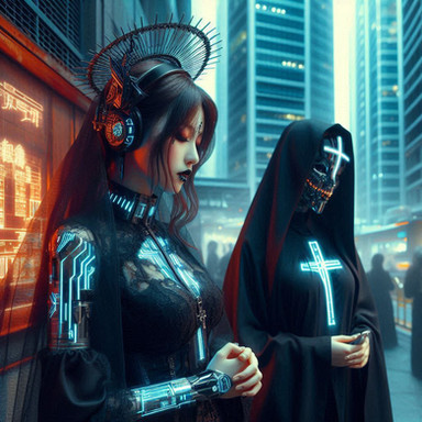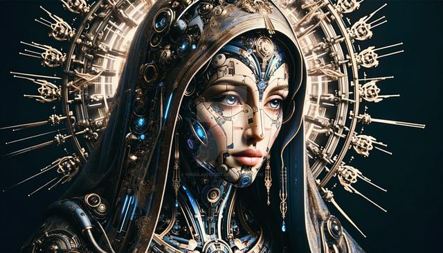 #cyberpunk #digitalart #artificialintelligence #augmentedreality #cyberangel #digitalage #digitalhalo #futurism #futuristic #mecha #neoreligion #posthuman #robotica #sacredgeometry #scifiart #virtualreality #robotart #cybersaint #aiart #techpriestess #techworship #aiinspired #digitaldivine #technospirituality #cybermysticism #technofaith #sacredtechnology #holymachine #faithintechnology #technoprayers