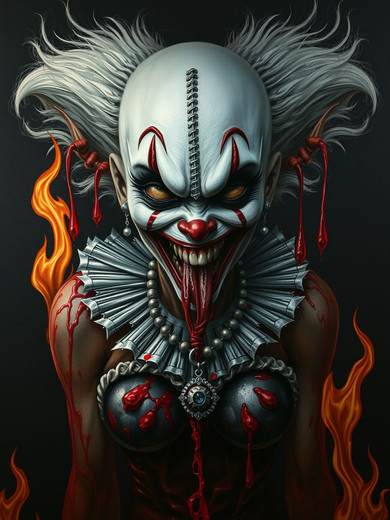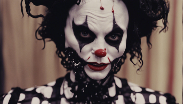 #blood #clown #conceptual #creepy #cross #darkfantasy #dramatic #harlequin #horror #makeup #portrait #surreal #tears #aiartcommunity #christian #disturbingimagery #dalle3_ai_art