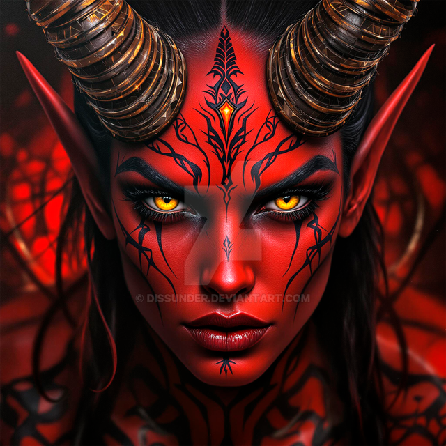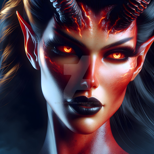 #darkfantasy #fiery #hell #portrait #red #sorceress #fire #aiartcommunity #infernalempress #tieflingfemale #dalle3_ai_art
