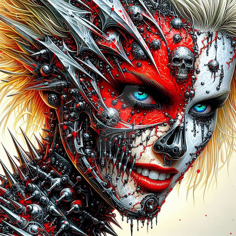 #cyborg #cyberpunk #allure #artificial #beauty #circuitry #circuits #digital #divided #elegance #emotions #face #fragmented #future #futuristic #gaze #human #identity #machine #mechanical #red #scarlet #sorrow #steel #synthetic #tear #technology #vision #wired