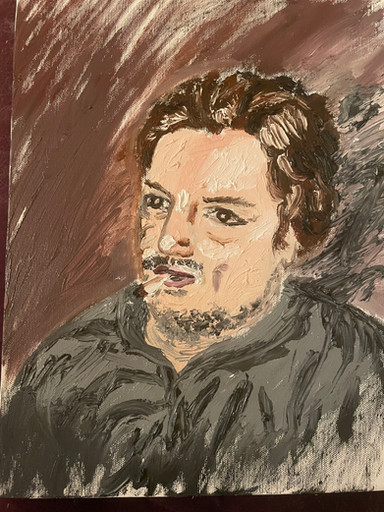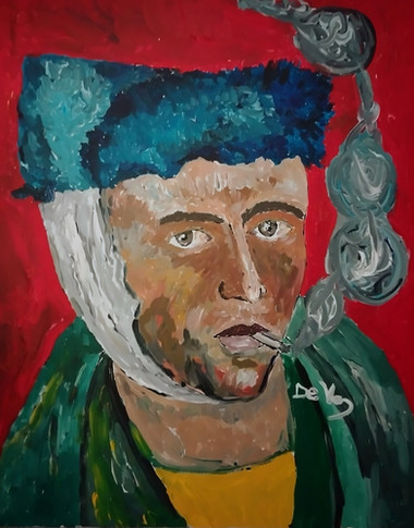 Inspired by Frank Duveneck’s ‘Whistling Boy.”20x16” Acrylic on Canvas