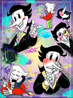 ALso just in case, I didn't forget his glasses. It seems like he didn't have glasses before he went insane judging by the poster next to the dumpster, where you meet Spamton the first time