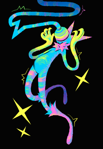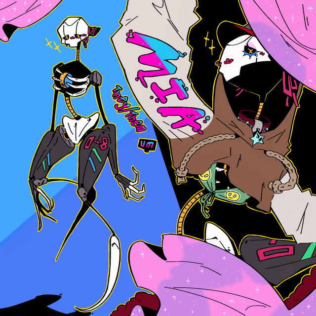 My take on 's characterConsidering the rebellious theme going in the character's story, I decided to go with triangle and lightning shapes. I also tried to make the colors less dull, but I'm afraid I went full retard mode with them, so I apologize if they look awful