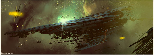 Playing with funky ship designs in side view..... I like how some of the design elements came out, but... it feels like it's stuck in the background, or the background needed to be less harsh. Hmmm.... painter 9.0 speedpaint again.Related content