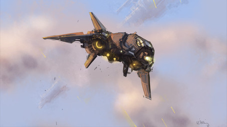 Yea, I think you're right about the blue, I actually did the sky first and then decided to add a ship design after I had done it, not the best way to do things, never got it to mesh. I think I spent around 45 minutes on it... and that was mainly messing with the background actually.. the ship itself was probably like 10 minutes (very simple two tone process for the most part).