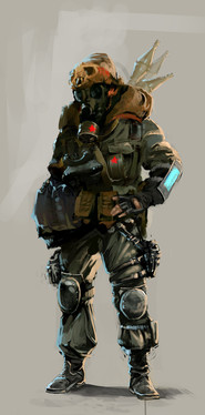 the sketchiness in this and how the objects he's wearing are slightly detached from him suggest a great deal of movement and power, the strength in the pose and the assured stance really add to that as well, i like the almost abrupt colouring, it gives a gritty appearance that adds to the character of the person, i really like the small details in the jacket and the slight textures you show as well, awesome job
