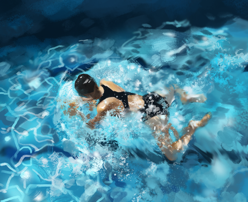 good relflexes for a speed paint. Not sure baout the top right part of the pool.
