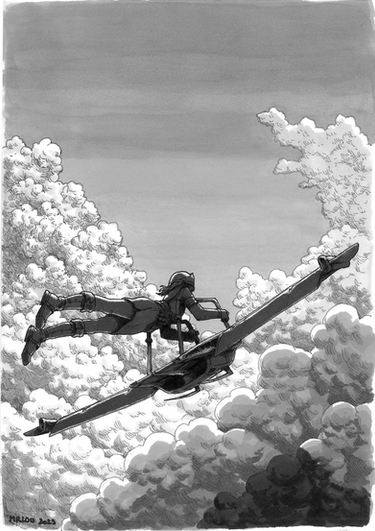 Holy sh*t this looks awesome! I'm not just saying that because of my bias about flying or anything. Love them clouds. The shadow in the first panel is tight. the colors or should I say the color scheme is well put together. Really gives me the sense of open air and freedom in flight. The plane design is cool too. I like the dragonfly-ish look of the one in the first panel. For someone hoping to improve though you already seem to have a pretty damn good grasp of the sequential. At least in your compositions. There's probably not alot of story on this page with dialogue and all but still it doesn't seem crowded. That last panel especially makes me want to read the next page. Damn it! I'm adding this to favorites right now!!