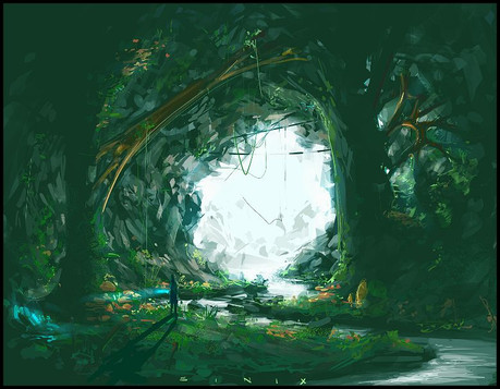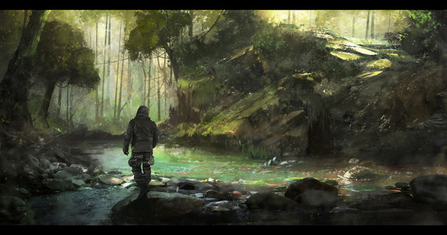 Liking the mishmash of environments here! Lovely dream quality with the misty greens, reflections and highlights.