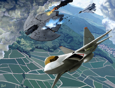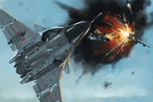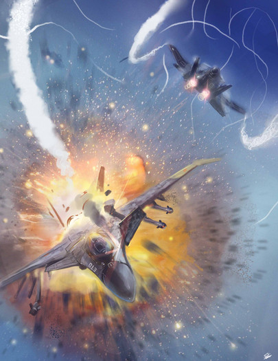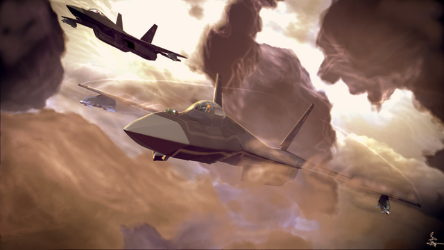 Your level of art is great! Really like how you solved the nearly to parallel line alignment of the stealth bomber and the bottom canvas line. Keep getting greater!