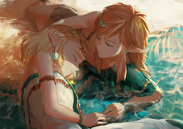 Having zelda wearing Link's shirt adds a subtle narrative. It's a really cute picture.
