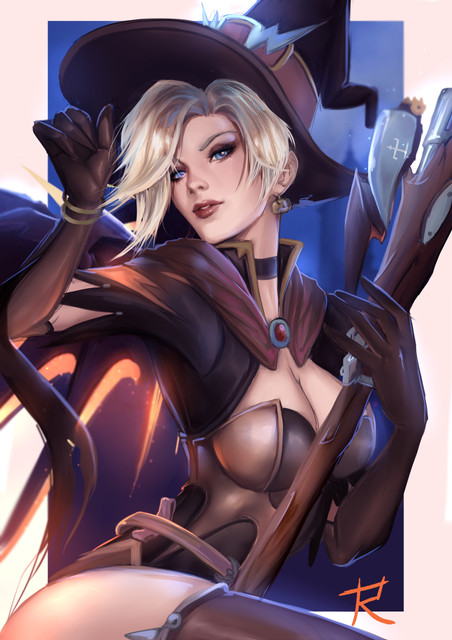 Forgot to upload this on here. Witch Mercy done for AX/youtube. Full video here: www.youtube.com/watch?v=Cy1i0K…Took around 8-9 hours, using Corel Painter.