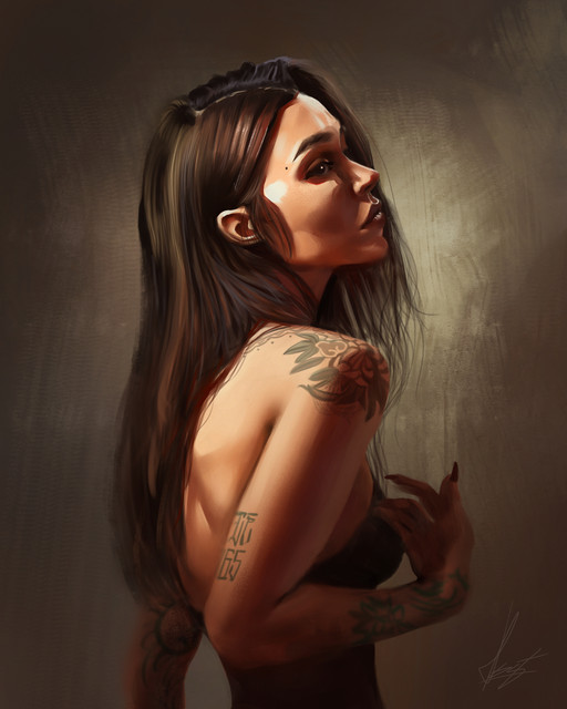 Wow, your Art/Gallery is incredible. I love this simple looking art piece. Amazing detail and the tattoo is perfect. Bravo!Β Β Β Β