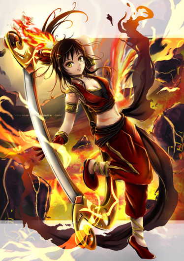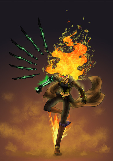 Trying out a different brush and technique to paint the fire. I like this one~ i think i'll use this technique instead