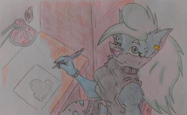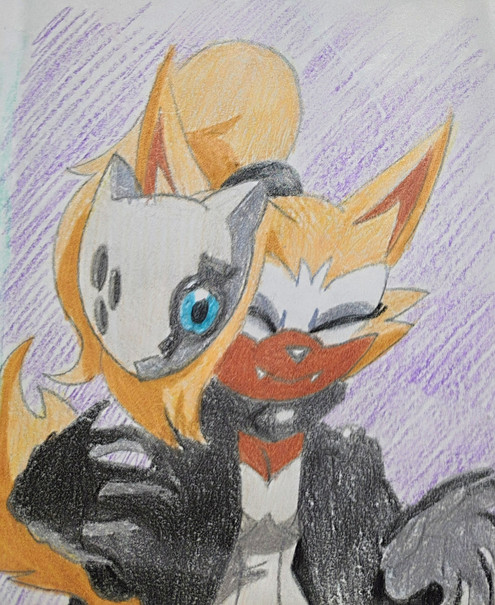 Ahh i fucked this up so the its a bit wrong but this is my new oc shes not in the comics yet but shes official her names alexa and shes max's "rival" i guessShes a raccoon\fox