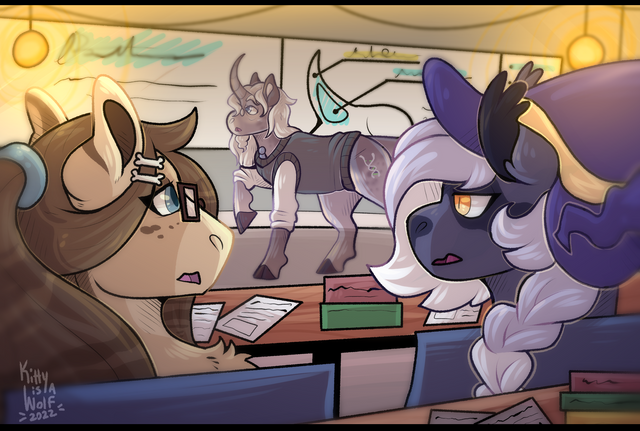 Descendants of nomads who gathered the preserved medical and magical knowledge and artifacts in the Wasteland. Dazling Meadows, the head of the Meadows family, and Sandy House, his Counselor.www.fimfiction.net/story/51252…