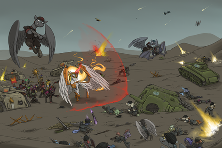 MLP got you drawing, MLP got me to make into VISITING Deviantart, then making an account.Β Β PoorYorrick (who has since deleted his profile) made a Warhammer-inspired universe called "Equestria Divided," and the roster for the of the Cult of Laughter was availableΒ to non-members.Β Too violent, so it was made sensitive material.