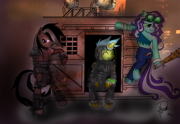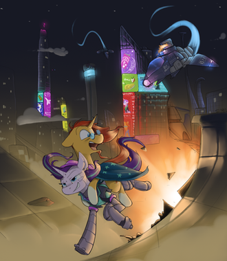 #cyberpunk #digitalart #fanart #griffon #pony #unicorn #mlpfim #gildamlp #trixielulamoon #starlightglimmer #mlpmylittlepony