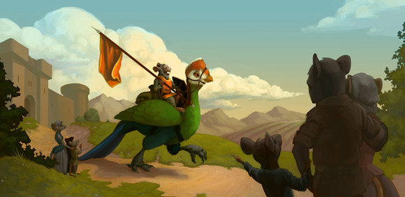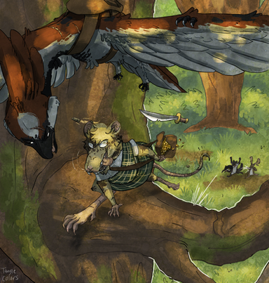 This one is inspired by the one bird I saw diving into a field the other day. Two mice (a guard and a priest, or a monk) narrowly escaping the destruction of their hometown, on to adventure !Related content