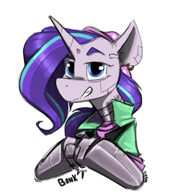 Cyberpunk Trixie! Went with a grungier look to go with her being a traveling showmare.Related content