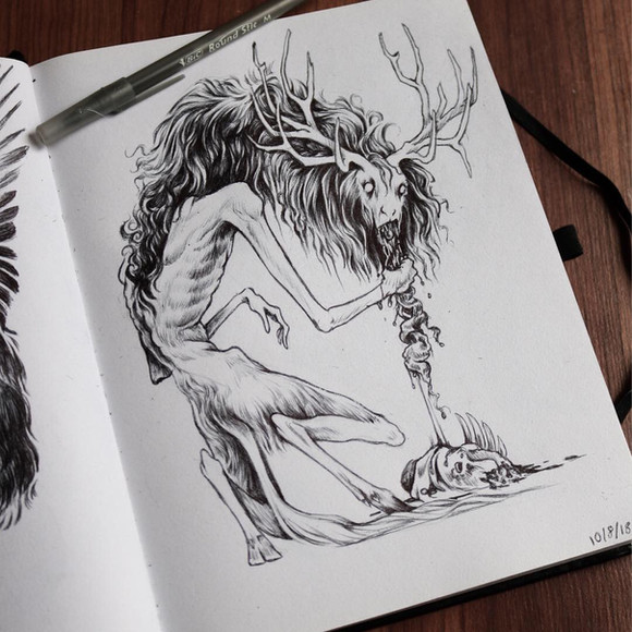 #animal #creepy #crooked #deer #drawing #horror #human #monster #weird #creature #deerskull #freak #traditionalart #inktoberchallenge #inktober2017