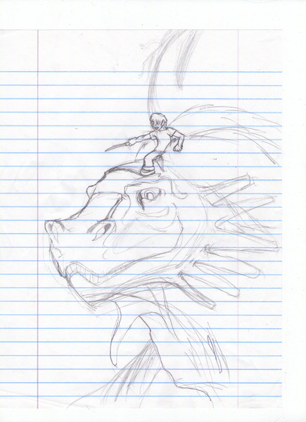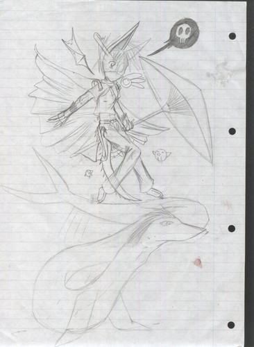 Should this be put under 'Mature'? Even if not now, should it be when it's all detailed and and finished?Anyway, the Gelert pup in the back is a much younger Choosanama. The creepy big creature is a Krawk. The Gelert being eaten is Choosanama's mom. No, Seekona wasn't anywhere around. |P