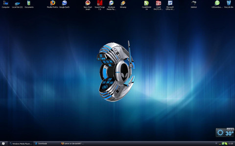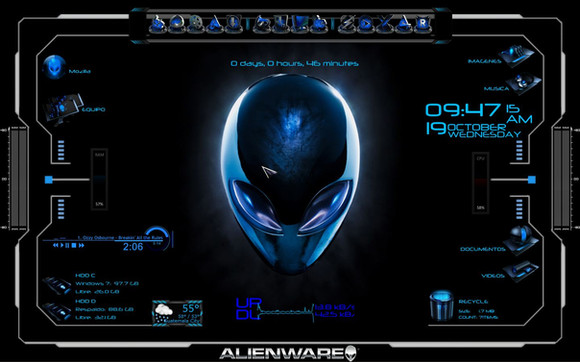 well this is the theme im using currently its the new alienware xenomorph theme, the mediaplayer skin is from invader, the adobe dock icons are from the Adobe Suite CS2 2808 by ~DARIMAN icon set, and the dock at the bottom is also a part of the new skin[that sadly doesnt have a mediaplayer skin] the wallpaper also is a part of the package, im still new to the whole object dock thing so i like it plus my old desktop annoyed me it really was a messRelated content