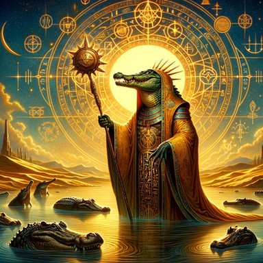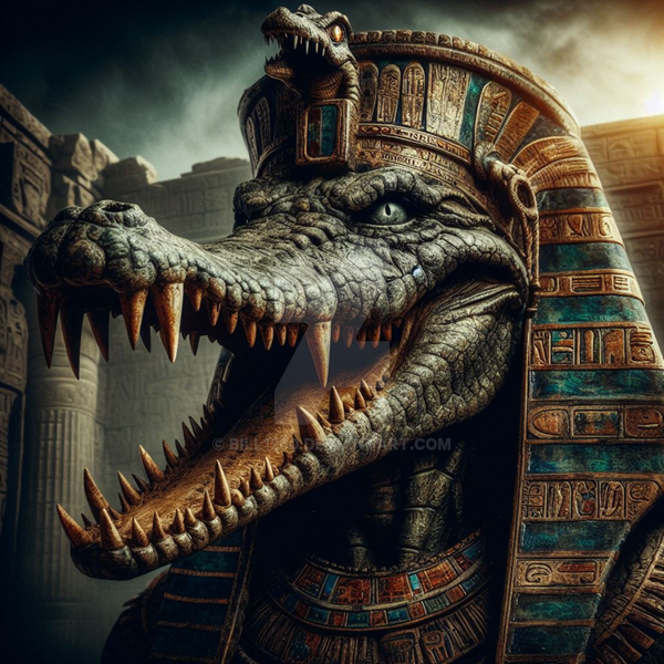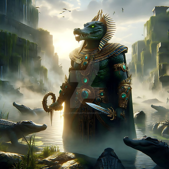 #ancient #reptile #digitalart #characterdesign #conceptart #portrait #darkart #egyptiangod #egyptiangoddess #egyptianmythology #fantasy #mythology #occult #photorealistic #ritual #surrealism #aiart #aigenerated