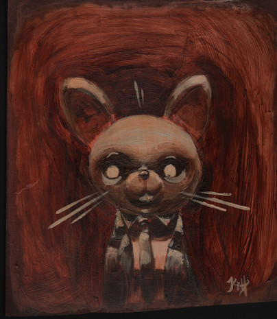Cardboard painting! My favorite. I just recently discovered how fun it is: Way funner than canvas will ever be. He reminds me of a lab bunny.