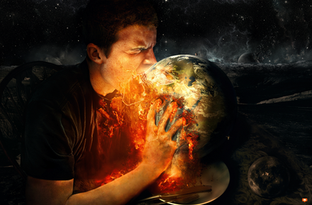 He's got ta be HOTT!!! I understand being tired and uninspired. But I hope it pleases you to know that you have inspired ME. I really love the concept of the guy within the planet...like a cosmic birth. Very cool!!