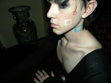 The visible elements of your face show enough to know that you are a beautiful subject to photograph. I like this.... The red painted lines though give me the sense of someone striking you with bloody hands. that brought a tear to my eye.