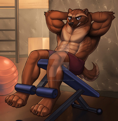 #anthro #commission #furries #furry #fursona #muscle #painterly #speedpaint #speedpainting #workout #original_character #digital_art #anthro_bear #working_out #anthro_art #bear_fursona #detailed_anthro_art #bear